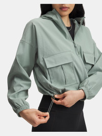 This hoodie is all about function.It's built with our most technical woven fabric that repels water and is insanely durable. Plus, has secure pockets to store your stuff and adjustable cuffs. Product Details - UA Storm technology repels water without sacrificing breathability - Ripstop stretch-woven fabric is lightweight & extremely durable - Snap-closure cargo pockets - Drop hem shoulder - Bungee drawcord adjust on bottom hem for a secure, custom fit - Uses a fluorine-free water repellent treatment Size & Fit - Fuller cut for complete comfort. Space & Care - Style #: 6005502 - 93% Nylon/7% Elastane - Imported