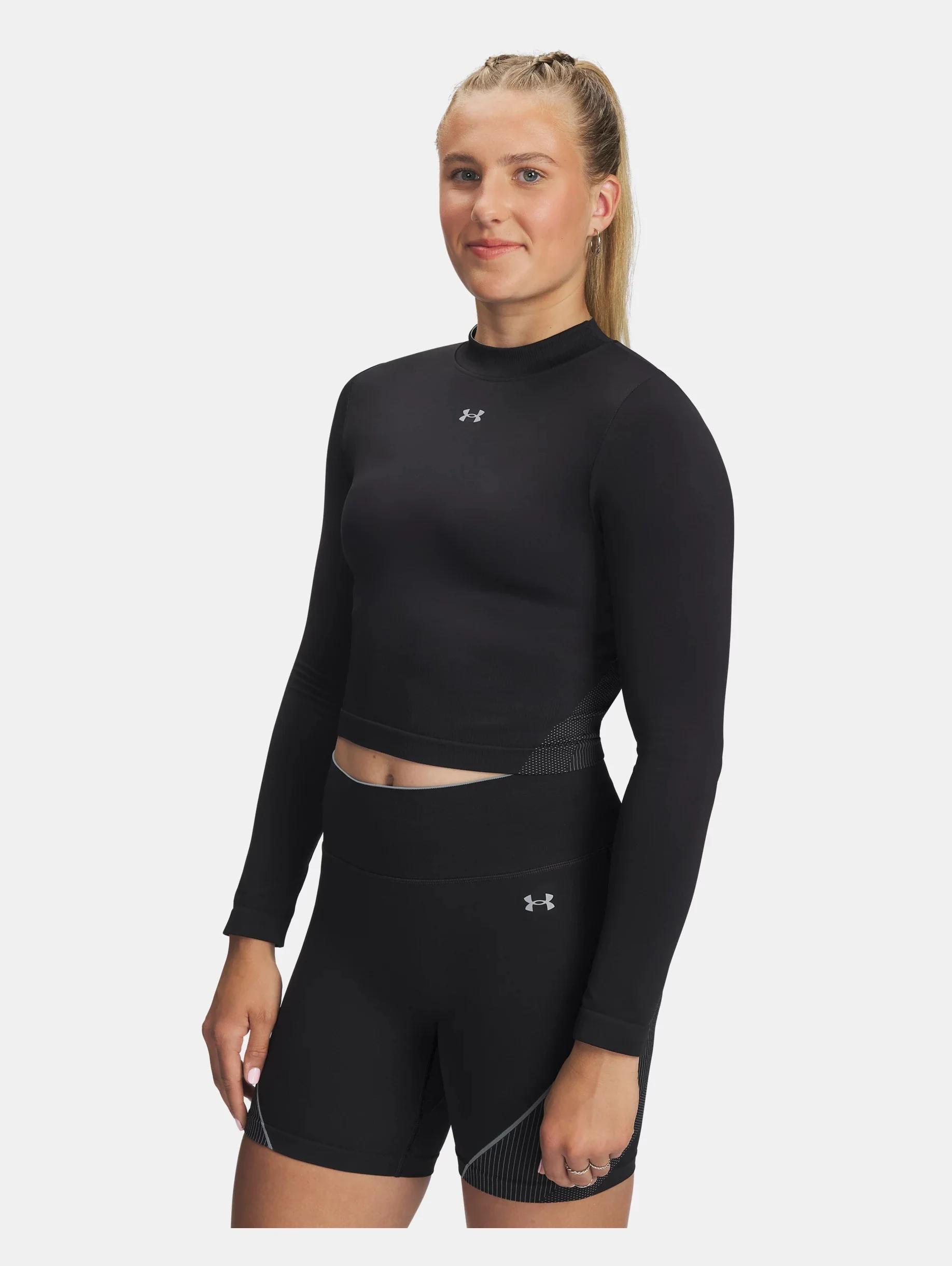 Nothing can hold you back in this long sleeve.Made seamless where you need it most so there's less rubbing—plus it's extra breathable with strategically-placed mesh where you sweat the most to help you stay cool and focused. Product Details - Super-soft, 2-color knit fabric with body-mapped textures that shape & flatter the body - Nearly sew-free design to eliminate chafing - 4-way stretch material moves better in every direction - Material wicks sweat & dries really fast - Ribbed collar Size & Fit - Streamlined fit that’s not too tight or too loose. Space & Care - Style #: 6000645 - 76% Nylon/18% Polyester/6% Elastane - Imported