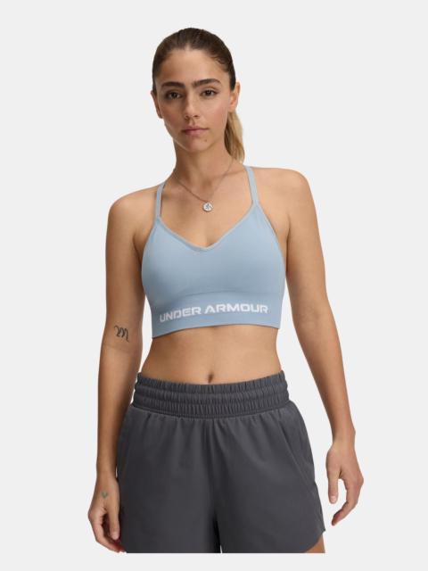 This bra gives you the right support for low-impact activities.It has a longer cut, seamless fit, and adjustable straps for complete comfort. Product Details - Delivers strategic support, tailored for low-impact activities like yoga, pilates & hiking - Soft knit with engineered ventilation, mapped to the places you need it most - Removable cups for enhanced shape & coverage - Skinny strap pullover with adjustable cross back & keyhole design - Material wicks sweat & dries really fast - 4-way stretch material moves better in every direction - Odor control technology minimizes odor - UPDATED SIZING: We revamped our bra sizing so you can find a fit that feels custom to your unique shape—check the size chart to find your perfect match Size & Fit - Streamlined fit that’s not too tight or too loose. Space & Care - Style #: 1384417 - 88% Polyester/12% Elastane - Imported - Remove pads before washing - Machine wash cold with like colors - Do not bleach - Tumble dry low - Do not iron - Do not use softeners - Do not dry clean