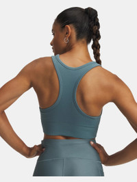 This bra gives you the right support for medium-impact activities. It has a longer cut and seamless fit for complete comfort. Product Details - Delivers strategic support, tailored for medium-support activities like cycling, weight training & boxing - Soft knit with engineered ventilation, mapped to the places you need it most - Removable cups for enhanced shape & coverage - Classic pullover racerback design - Material wicks sweat & dries really fast - 4-way stretch material moves better in every direction - Odor control technology minimizes odor Size & Fit - Streamlined fit that's not too tight or too loose. Space & Care - Style #: 1384419 - 88% Polyester/12% Elastane - Imported - Remove pads before washing - Machine wash cold with like colors - Do not bleach - Tumble dry low - Do not iron - Do not use softeners - Do not dry clean