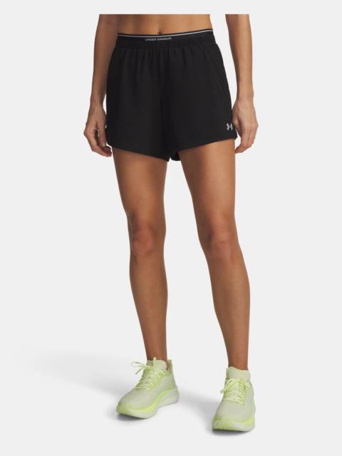 Nothing can hold you back in UA Vanish, one of our fastest-drying materials.These shorts are ultralight, durable, breathable, and dry super-fast to keep you cool and focused. Product Details - Light, durable & super-comfortable stretch-woven fabric - 4-way stretch material moves better in every direction - Material wicks sweat & dries really fast - Exposed elastic at top edge of waistband with wordmark detail - Open hand pockets - Shaped, side-vent hem & curved back seam to shape & flatter the body - Main body fabric contains at least 80% recycled polyester, excluding trims & embellishments Size & Fit - Fuller cut for complete comfort. Space & Care - Style #: 6009966 - Inseam: 5" - Pockets: Yes - 86% Polyester/14% Elastane - Imported