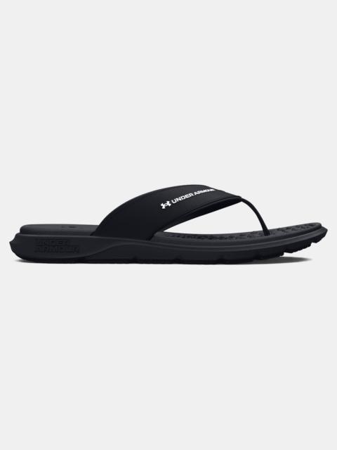 What's it do? Project Rock training gear was built to help you find boundaries, then push right through them. Everything in this collection was personally approved by Dwayne Johnson, the hardest worker in the room. ANY room. Product DNA - Fixed, molded strap with soft comfort lining that rolls over edges for zero irritation - Stretch band on medial side of the strap adapts to your foot for a perfect fit at workout start & finish - Recycled footbed provides step-in comfort while repurposing materials - Charged Cushioning® midsole absorbs impact & converts it into responsive quickness & comfort - Durable rubber outsole compound uses unique traction lugs for unmatched grip & traction - Regular - Style #: 3026034 - Imported