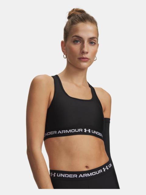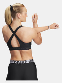 What's it do? Bras shouldn't be complicated. They should be comfortable and they should be supportive. So we went straight to the source and asked real women how to make their favorite UA bra even better. And it worked. Product DNA - Delivers strategic support, tailored for medium-support activities like cycling, weight training & boxing - Soft, quick-drying cups provide extra structure & coverage with perforations for added breathability - Removable cups with Right & Left labels - Crossover straps with updated keyhole detail for easier on/off - Updated interior construction helps keep pads in place—during wear & wash - Elastic band feels super-smooth & soft - Super-smooth, double-layer HeatGear® fabric delivers superior next-to-skin feel - Material wicks sweat & dries really fast & light - Compression: Ultra-tight, second-skin fit. - Style #: 1361034 - 87% Polyester/13% Elastane - Imported