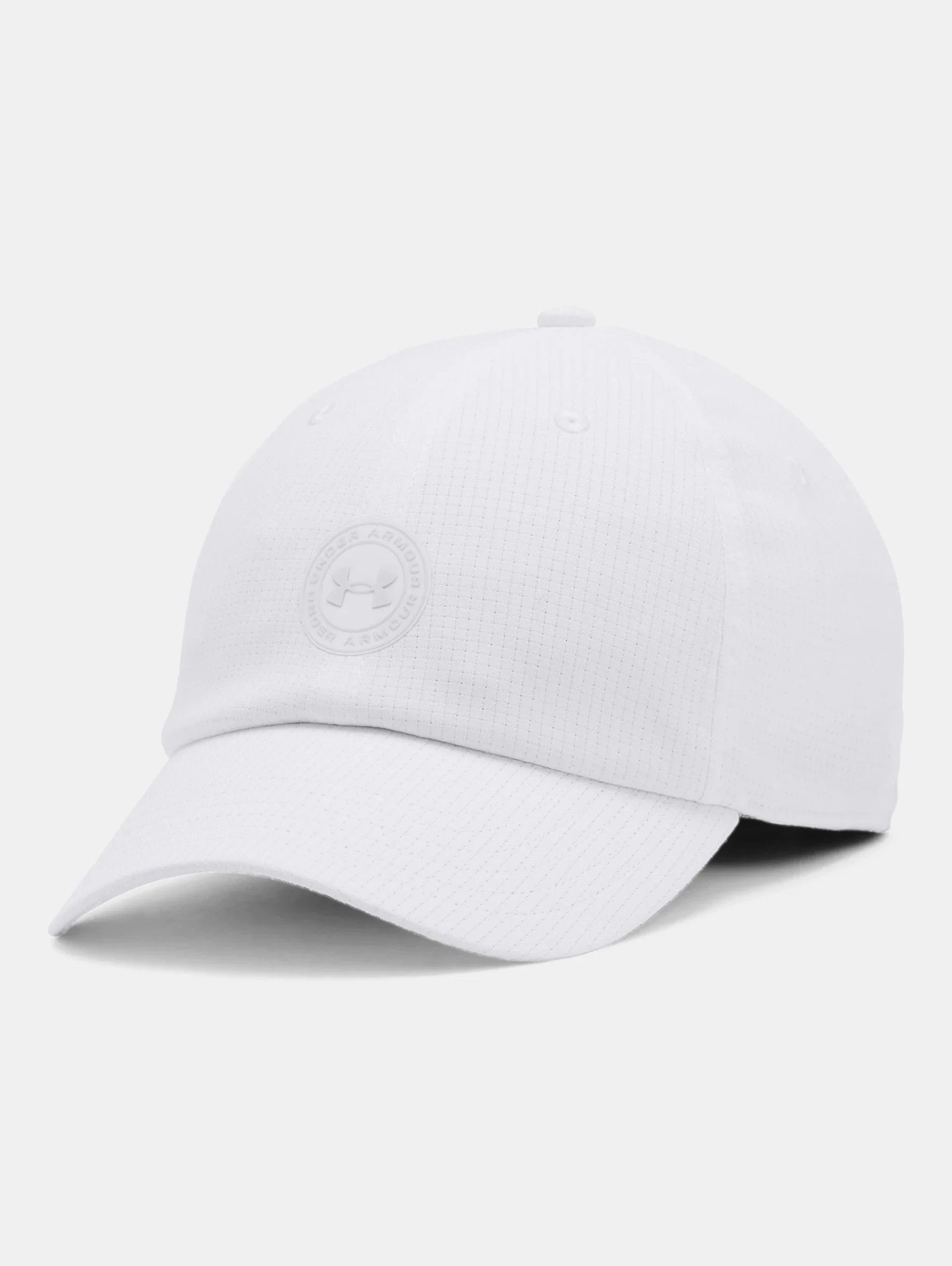 What's it do? This hat was designed to keep your head cool by dumping excess heat through special vents that allow hot air out, but are small enough that the sun's rays aren't an issue. Product DNA - ArmourVent® Technology delivers ultimate breathability in a light, stretchy, durable & fast-drying fabric - Iso-Chill sweatband helps disperse body heat, making it feel cool to the touch - Adjustable strap closure - Updated, larger back opening for multiple ways to wear your hair - One Size Fits Most - Style #: 1383445 - Raised silicone logo - 100% Polyester - Imported