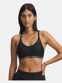 What's it do? Unique crossback strap design delivers extra support in all the right places but still staying incredibly comfortable. Product DNA - Built for Light-Support activity & all-day comfort - Removable cups for enhanced shape & coverage - Mesh panels at front neckline & lower bust for added breathability - Quick & easy adjusts on front of straps for a custom fit - Deep V neckline & exposed elastic bottom band with wordmark detail - HeatGear® fabric delivers superior next-to-skin feel, wicks sweat & dries really fast - Odor control technology minimizes odor - UPDATED SIZING: We revamped our bra sizing so you can find a fit that feels custom to your unique shape—check the size chart to find your perfect match - Compression: Ultra-tight, second-skin fit. - Style #: 1386424 - 87% Polyester/13% Elastane - Imported