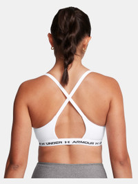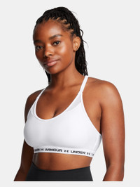 What's it do? Unique crossback strap design delivers extra support in all the right places but still staying incredibly comfortable. Product DNA - Built for Light-Support activity & all-day comfort - Removable cups for enhanced shape & coverage - Mesh panels at front neckline & lower bust for added breathability - Quick & easy adjusts on front of straps for a custom fit - Deep V neckline & exposed elastic bottom band with wordmark detail - HeatGear® fabric delivers superior next-to-skin feel, wicks sweat & dries really fast - Odor control technology minimizes odor - UPDATED SIZING: We revamped our bra sizing so you can find a fit that feels custom to your unique shape—check the size chart to find your perfect match - Compression: Ultra-tight, second-skin fit. - Style #: 1386424 - 87% Polyester/13% Elastane - Imported