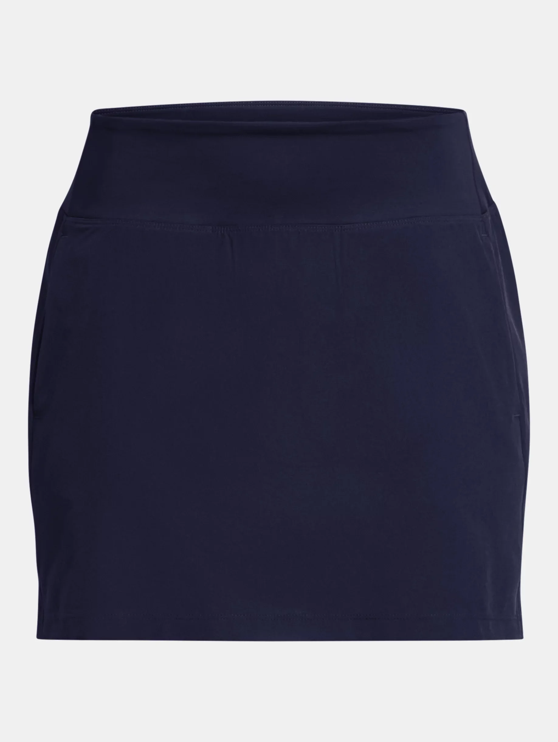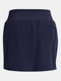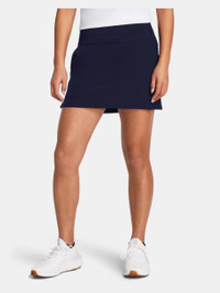 What's it do? It's the golf skort that gets what golfers need on the course: Pockets to carry balls, tees, and even a yardage book. Everything you need to keep up the pace of play. Product DNA - UA Storm technology repels water without sacrificing breathability - Stretch-woven outer fabric is tough but lightweight - UPF 40 protects your skin from the sun's harmful rays - Built-in knit shorts for added coverage & support - 4-way stretch material moves better in every direction - Wide, soft knit waistband sits just right on the hips - Open hand pockets & back pocket on skirt - Side drop-in pocket on liner shorts & interior silicone grip for a stay-put fit - No Fit Type - Style #: 1383162 - Skirt length: 15" - Inseam (inner shorts): 3" - Pockets: Yes - Outer Skirt: 88% Polyester/12% Elastane - Inner Shorts: 77% Polyester/23% Elastane - Imported