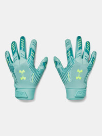 What's it do? The UA F9 football gloves are light, tight, and sticky—in other words, they're built for nothing but catches. Product DNA - Textured TurfGear material on back of hand is ultra-durable & breathable - Silicone print overlays for added support, structure & mobility - UA GlueGrip makes sure your gloves start & stay sticky—providing longer lasting, more consistent tack - Palm wrapover design for enhanced grip & protection on the field - Molded, adjustable closure for a custom, secure fit - Regular - Style #: 1381998 - Meets NFHS/NCAA/SFIA standards - 50% Silicone/50% Nylon - Imported
