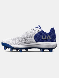 What's it do? Women's feet are a different shape than men's. That's a fact. These shoes were built for women by women, giving you the best fit, traction, breathability, and serious score power. Product DNA - Textile upper with PU coating combines sneaker-like comfort, breathability & ultimate durability - Enhanced fit with plush pocket around the ankle for comfort & support - Lightweight, molded PerfX Pro sockliner molds to your foot for maximum step-in comfort - Charged Cushioning® midsole converts impact into explosive speed & power on the diamond - UA Microtips TPU cleat plate provides more comfort - 10 strategically placed cleats on perimeter for more points of ground contact to reduce cleat pressure - Regular - Style #: 3026603 - Weight: 10.69 oz. - Lace type: Standard tie - Imported