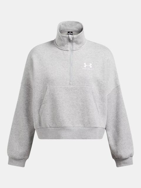 What's it do? UA Icon Fleece has the feel of your favorite old school fleece with a clean, oversized fit that looks just as good with gym gear as it does with street clothes. Product DNA - Ultra-soft, mid-weight cotton-blend fleece with brushed interior for extra warmth - Front kangaroo pocket - Generous ½ zip front makes for easy layering - Drop hem shoulder for an oversized fit & feel - Ribbed cuffs & bottom hem - No Fit Type - Style #: 1386460 - 80% Cotton/20% Polyester - Imported
