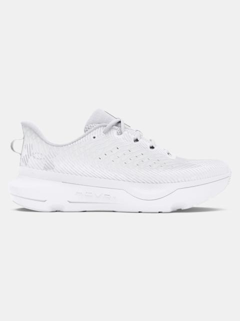 What's it do? Working on your endurance? UA Infinite Pro has the perfect amount of support and new, springy UA HOVR+ cushioning to keep your legs feeling fresh. So, when coach says, "Keep running," you'll be the one pushing the pace. Product DNA - Breathable engineered warp knit upper & zonal structure for containment with 3D haptic print details - Plush collar lining & tongue for enhanced fit & comfort - Heel design helps you land smoothly, lessens impact & increases overall stability - 3D-molded sockliner cradles the foot for enhanced step-in comfort - Extra-springy UA HOVR™+ cushioning reduces impact, returns energy & helps propel you forward - Rubber outsole designed to provide durability & lightweight rebound where needed - Regular - Style #: 3027200 - Offset: 8mm - Weight: 11.5 oz. - Lace type: Standard tie - Imported