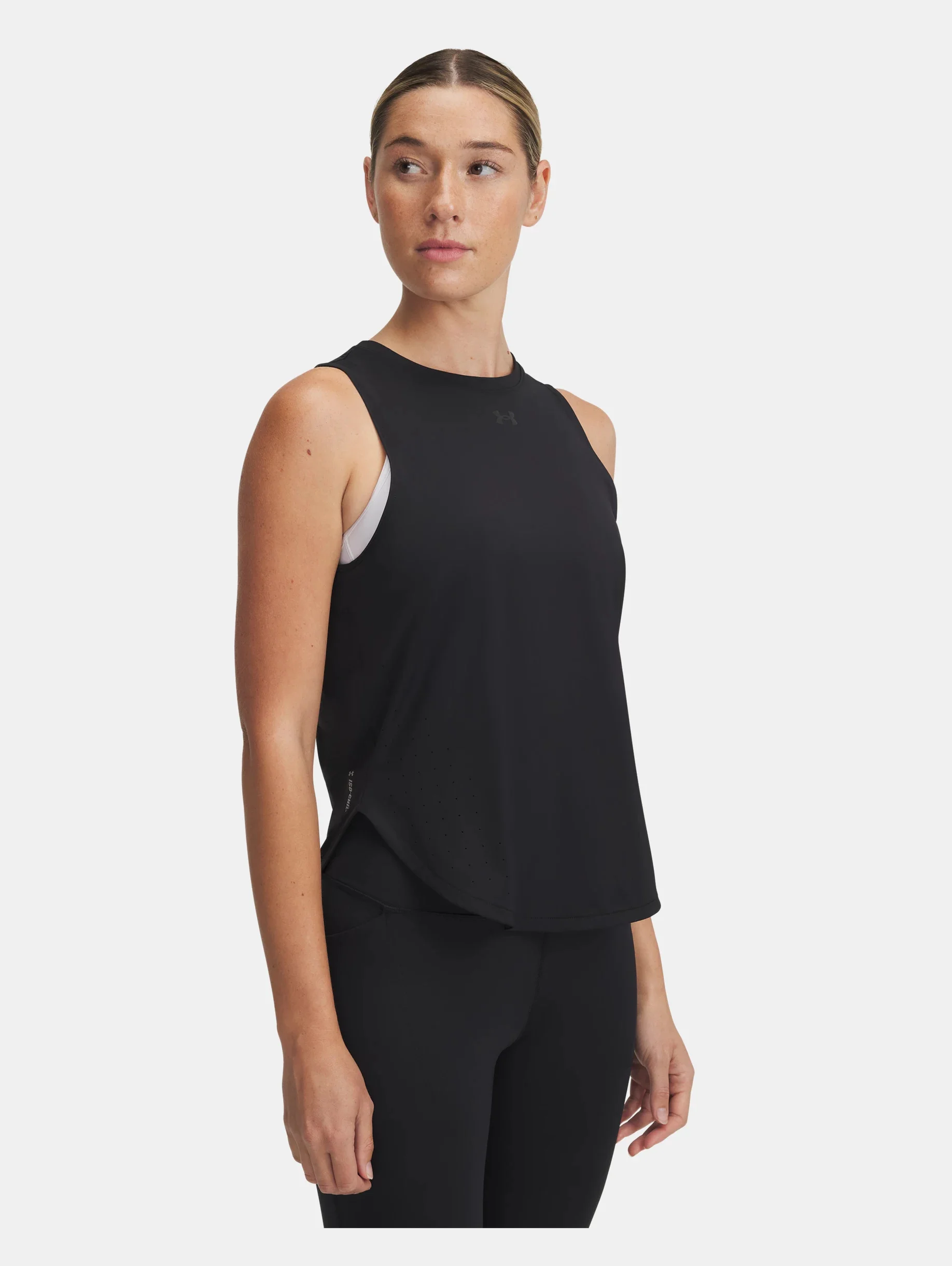 What's it do? We flattened out the fibers in this running tank and added some science to create a game-changing fabric that quickly pulls heat away from the skin-keeping you calm, cool, and crushing the miles at max capacity. Product DNA - New, lighter Iso-Chill fabric helps disperse body heat, making it feel cool to the touch - Strategic laser perforations for added ventilation where you need it - UPF 30 protects your skin from the sun's harmful rays - 4-way stretch material moves better in every direction - Material wicks sweat & dries really fast - Odor control technology minimizes odor - Curved hem for a more flattering fit & feel - Loose: Fuller cut for complete comfort. - Style #: 1389563 - Reflective details for low-light runs - 90% Nylon/10% Elastane - Imported