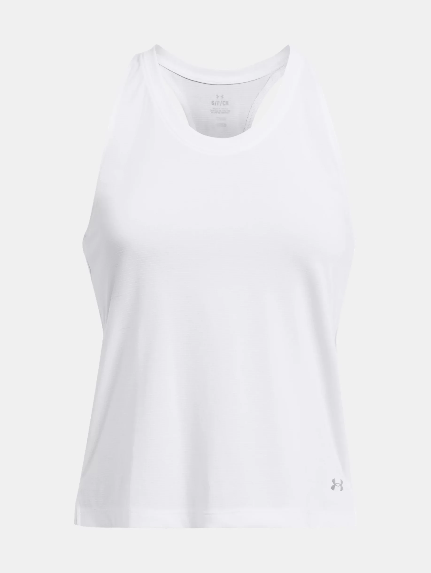 What's it do? Longer distances and faster runs start with incredible comfort, perfect stretch, and a lightweight feel. That's what you get with UA Streaker. It basically feels like you're wearing nothing. Product DNA - Fabric is soft, lightweight & breathable - Material wicks sweat & dries really fast - Overlapped hem detail for enhanced ventilation - Classic racerback - Reflective details for greater visibility on low-light runs - Odor control technology minimizes odor - Fitted: Streamlined fit that’s not too tight or too loose. - Style #: 1382436 - 94% Polyester/6% Elastarell - Imported