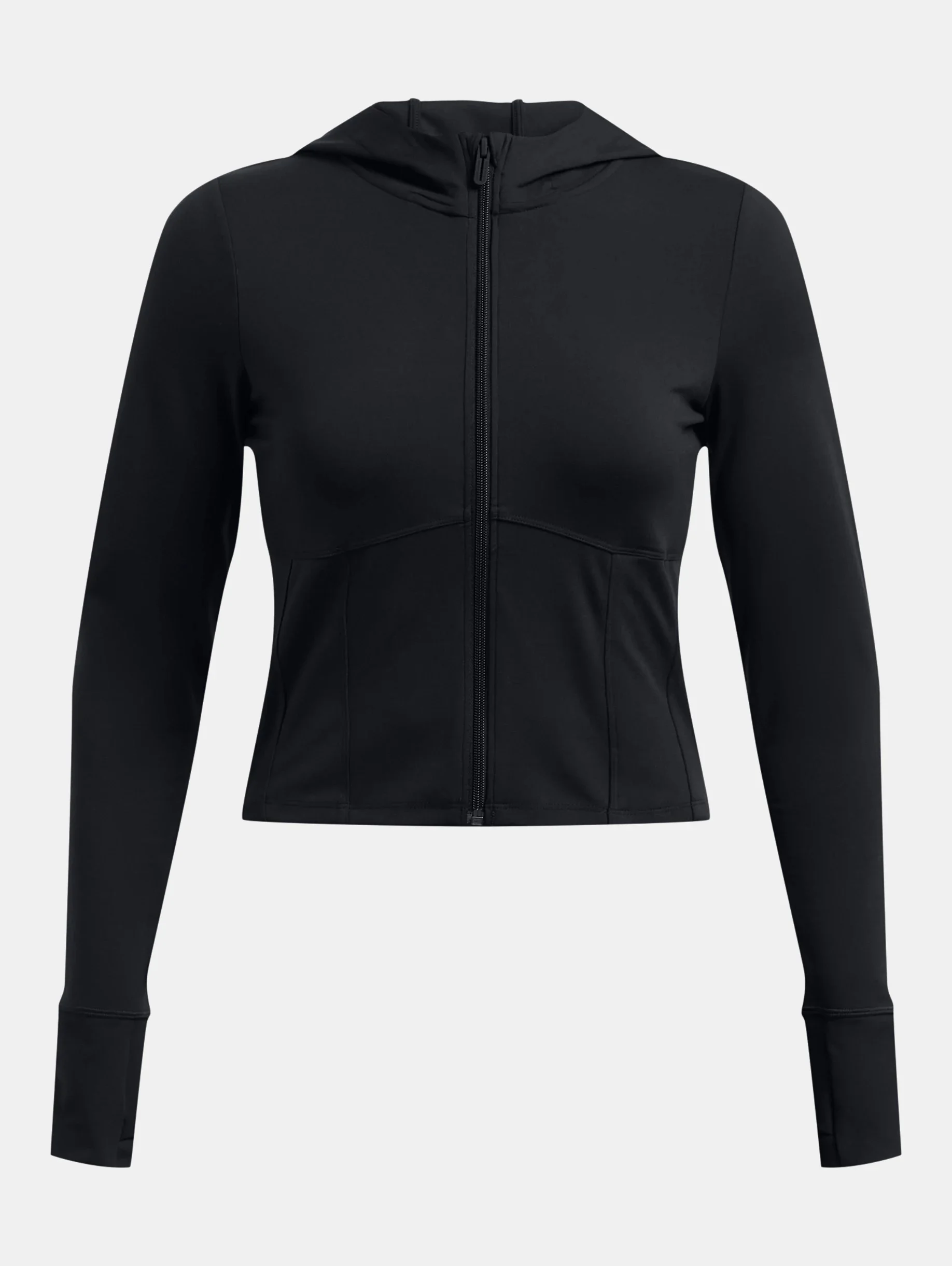 What's it do? UA Meridian staples are not only ultra soft, they're also light, quick-drying, and designed to flatter your body in all the right places. You'll literally wear them everywhere. Product DNA - Super-soft & stretchy performance knit fabric delivers support & lasting comfort with improved durability - Material wicks sweat & dries really fast - 4-way stretch material moves better in every direction - Internal zip phone pocket on wearer's left side - Built-in thumbholes help keep sleeves in place - Underbust seam & front seam detail provides shaping & a flattering fit - Odor control technology minimizes odor - Fitted: Streamlined fit that’s not too tight or too loose. - Style #: 1386618 - 80% Polyester/20% Elastane - Imported