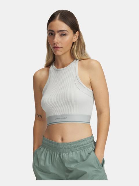 What's it do? UA Meridian staples are ultra soft, light, quick-drying, and designed to flatter your body. This tank uses a stretchy ribbed fabric that you'll never want to take off. Product DNA - Soft double-knit fabric with ribbed texture, is super-lightweight & comfortable - Material wicks sweat & dries really fast - 4-way stretch material moves better in every direction - Wide elastic bottom hem with wordmark detail - High neck collar & classic racerback design for mobility - Fitted: Streamlined fit that’s not too tight or too loose. - Style #: 1389641 - 94% Polyester/6% Elastane - Imported