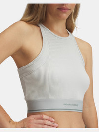 What's it do? UA Meridian staples are ultra soft, light, quick-drying, and designed to flatter your body. This tank uses a stretchy ribbed fabric that you'll never want to take off. Product DNA - Soft double-knit fabric with ribbed texture, is super-lightweight & comfortable - Material wicks sweat & dries really fast - 4-way stretch material moves better in every direction - Wide elastic bottom hem with wordmark detail - High neck collar & classic racerback design for mobility - Fitted: Streamlined fit that’s not too tight or too loose. - Style #: 1389641 - 94% Polyester/6% Elastane - Imported