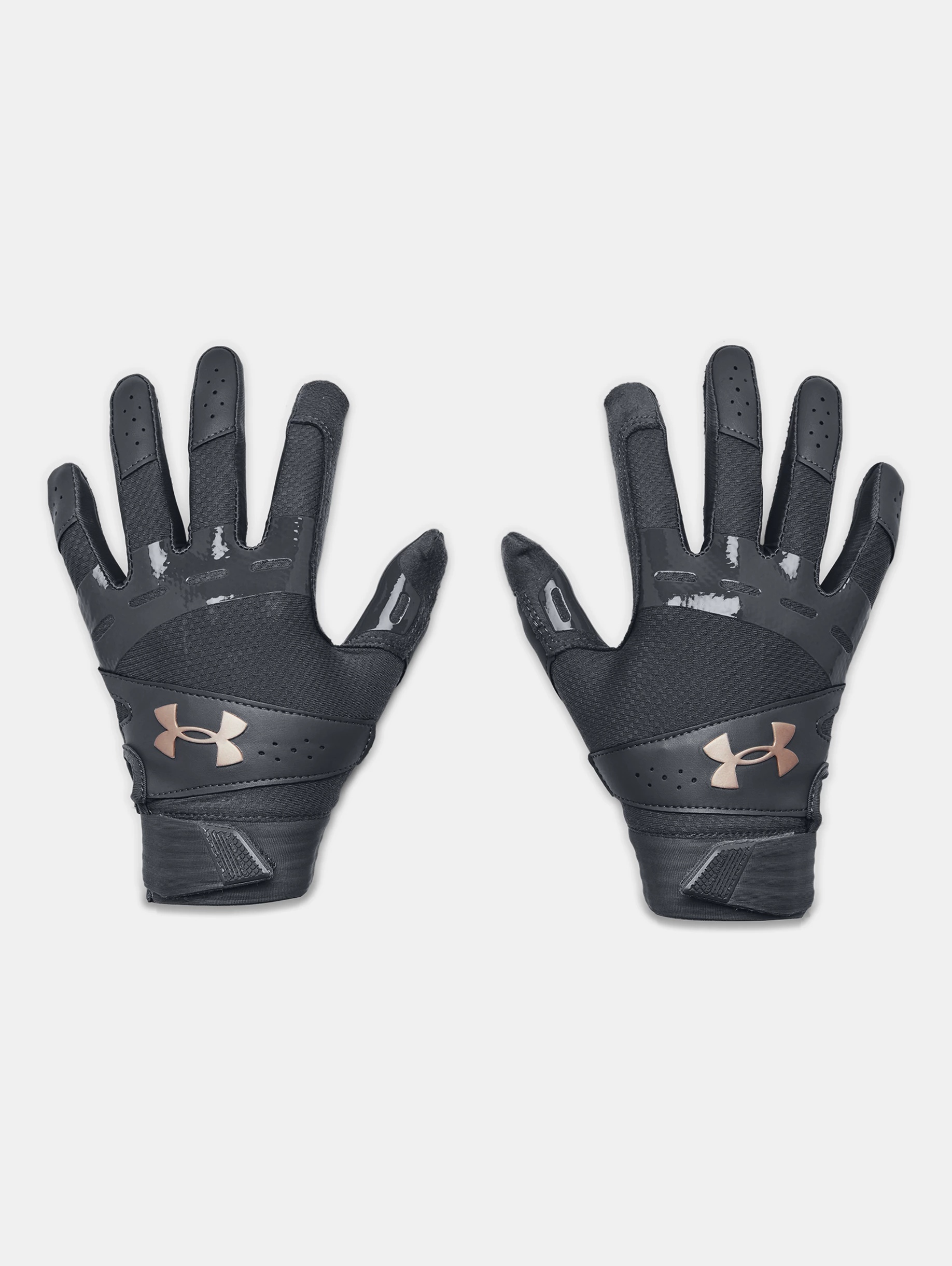 What's it do? Batting gloves that give you amazing grip, thanks to the silicone print on the microfiber palm. They're also an ultra-tight compression fit, which feels great after time in the cage. Product DNA - Synthetic microfiber palm with strategic silicone print delivers excellent durability & gripping power - HeatGear® fabric with 4-way stretch for a cool, comfortable feel - Finger perforations for added breathability - Elastic cuff provides wrist support & a locked-in feel - Internal locker tag to mark your name or number - Adjustable - Style #: 1372532 - 55% Polyester/25% Nylon/11% Polyurethane/9% Elastane - Imported