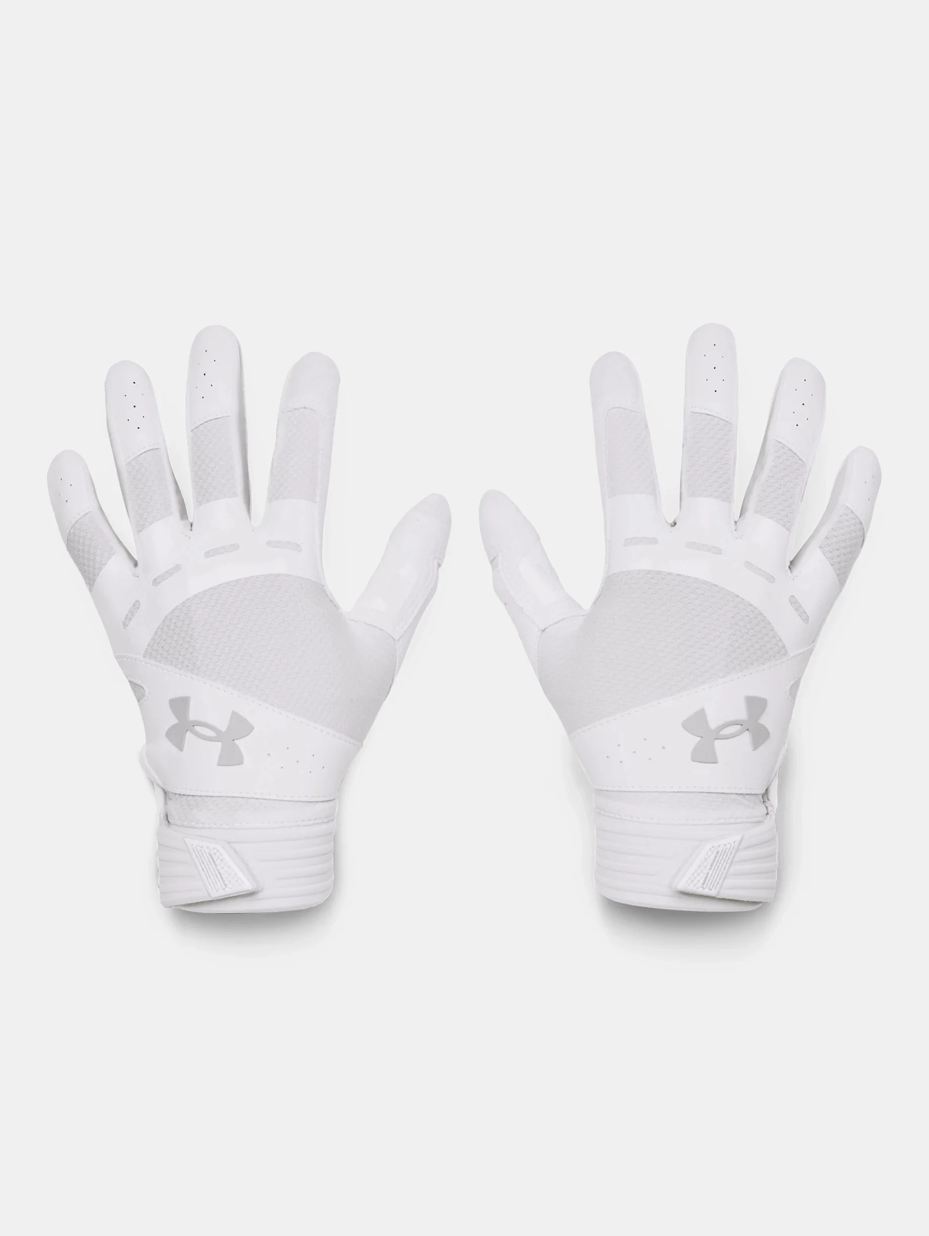 What's it do? Batting gloves that give you amazing grip, thanks to the silicone print on the microfiber palm. They're also an ultra-tight compression fit, which feels great after time in the cage. Product DNA - Synthetic microfiber palm with strategic silicone print delivers excellent durability & gripping power - HeatGear® fabric with 4-way stretch for a cool, comfortable feel - Finger perforations for added breathability - Elastic cuff provides wrist support & a locked-in feel - Internal locker tag to mark your name or number - Adjustable - Style #: 1372532 - 55% Polyester/25% Nylon/11% Polyurethane/9% Elastane - Imported