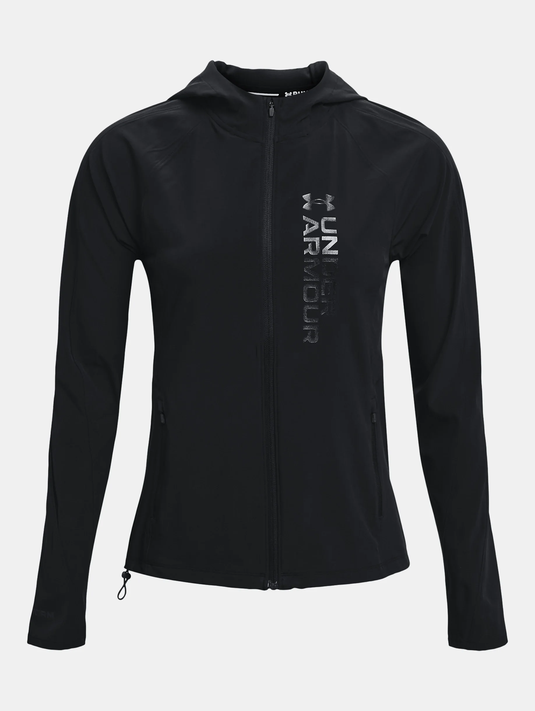 The UA Outrun The Storm series isn't just water-resistant—it's super-water-resistant, meaning it protects better and lasts longer than other run rain gear. And it's more stretchy and comfortable, so you'll be more focused. Product Details - UA Storm technology repels water without sacrificing breathability - Wind-resistant construction protects you from the elements - Durable, lightweight, stretch-woven fabric - 4-way stretch material moves better in every direction - Back vent construction for added breathability - Secure, zip hand pockets with right-side interior media pocket - Bungee adjust hood & bottom hem for a secure fit - Uses a fluorine-free water repellent treatment Size & Fit - Streamlined fit that's not too tight or too loose. Space & Care - Style #: 1361384 - Raglan sleeves - Reflective details for low-light runs - 87% Polyester/13% Elastane - Imported - Garment should be washed & dried zipped up - Machine wash cold with like colors - Wash garment inside out - Use only non-chlorine bleach when needed - Tumble dry low - Do not iron - Do not use softeners - Do not dry clean