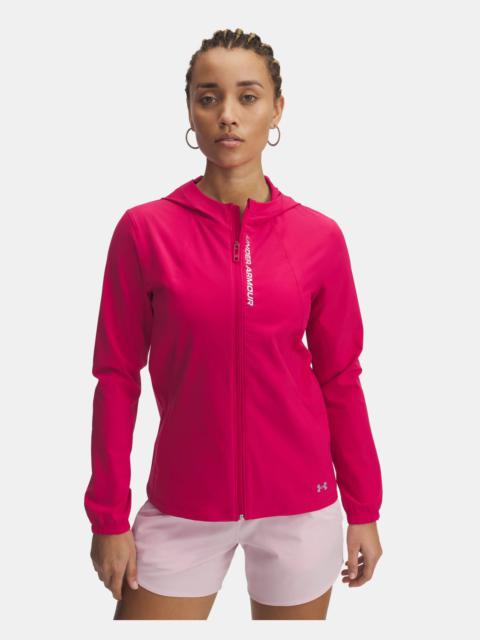 What's it do? The UA Outrun The Storm series isn't just water-resistant—it's super-water-resistant, meaning it protects better and lasts longer than other run rain gear. And it's more stretchy and comfortable, so you'll be more focused. Product DNA - UA Storm technology repels water without sacrificing breathability - Wind-resistant construction protects you from the elements - Durable, lightweight stretch-woven fabric provides enhanced mobility & comfort - 4-way stretch material moves better in every direction - Back vents for added breathability - Secure, zip hand pockets with right-side interior media pocket - Reflective details for low-light runs - Uses a fluorine-free water repellent treatment - Fitted: Streamlined fit that’s not too tight or too loose. - Style #: 1377043 - Encased elastic cuffs - 87% Polyester/13% Elastane - Imported