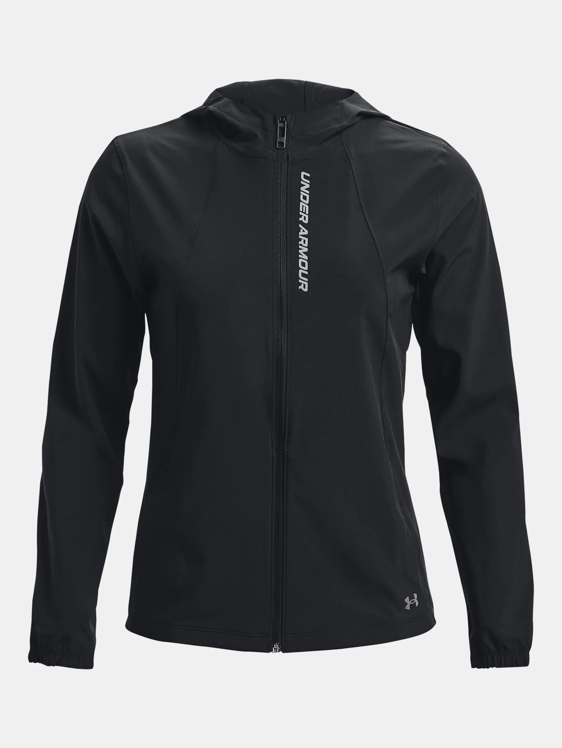What's it do? The UA Outrun The Storm series isn't just water-resistant—it's super-water-resistant, meaning it protects better and lasts longer than other run rain gear. And it's more stretchy and comfortable, so you'll be more focused. Product DNA - UA Storm technology repels water without sacrificing breathability - Wind-resistant construction protects you from the elements - Durable, lightweight stretch-woven fabric provides enhanced mobility & comfort - 4-way stretch material moves better in every direction - Back vents for added breathability - Secure, zip hand pockets with right-side interior media pocket - Reflective details for low-light runs - Uses a fluorine-free water repellent treatment - Fitted: Streamlined fit that’s not too tight or too loose. - Style #: 1377043 - Encased elastic cuffs - 87% Polyester/13% Elastane - Imported