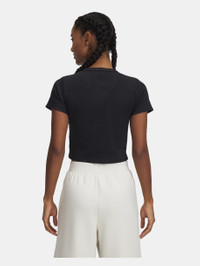 What's it do? UA Rival Rib essentials are a must for every athlete. The classic ribbed fabric is soft and stretchy and the cropped fit makes for easy layering. Product DNA - Soft ribbed fabric is lightweight & comfortable - 4-way stretch material moves better in every direction - Cropped body length with side-vent hem - Main body fabric contains at least 30% recycled polyester, excluding trims & embellishments - Fitted: Streamlined fit that’s not too tight or too loose. - Style #: 6000264 - 57% Cotton/38% Polyester/5% Elastane - Imported