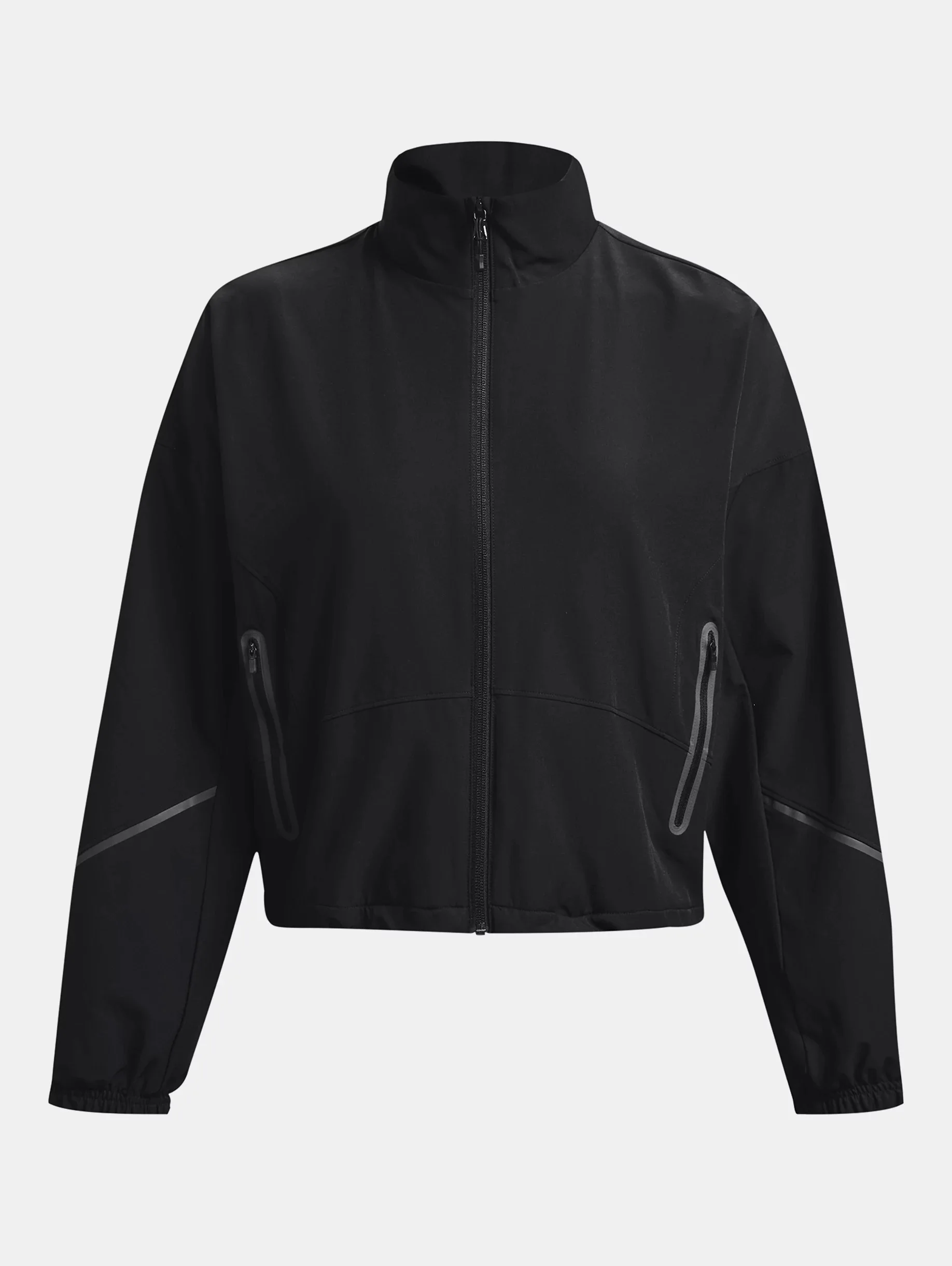 What's it do? If you're looking for a jacket you can actually train in on cold, wet days—you found it. Super-light and stretchy, rain rolls right off, and it keeps you warm but not hot. Product DNA - Stretch-woven fabric is tough but lightweight - 4-way stretch material moves better in every direction - Secure, zip hand pockets - Bungee drawcord adjust on bottom hem for a secure, custom fit - Loose: Fuller cut for complete comfort. - Style #: 1374889 - 90% Polyester/10% Elastane - Imported