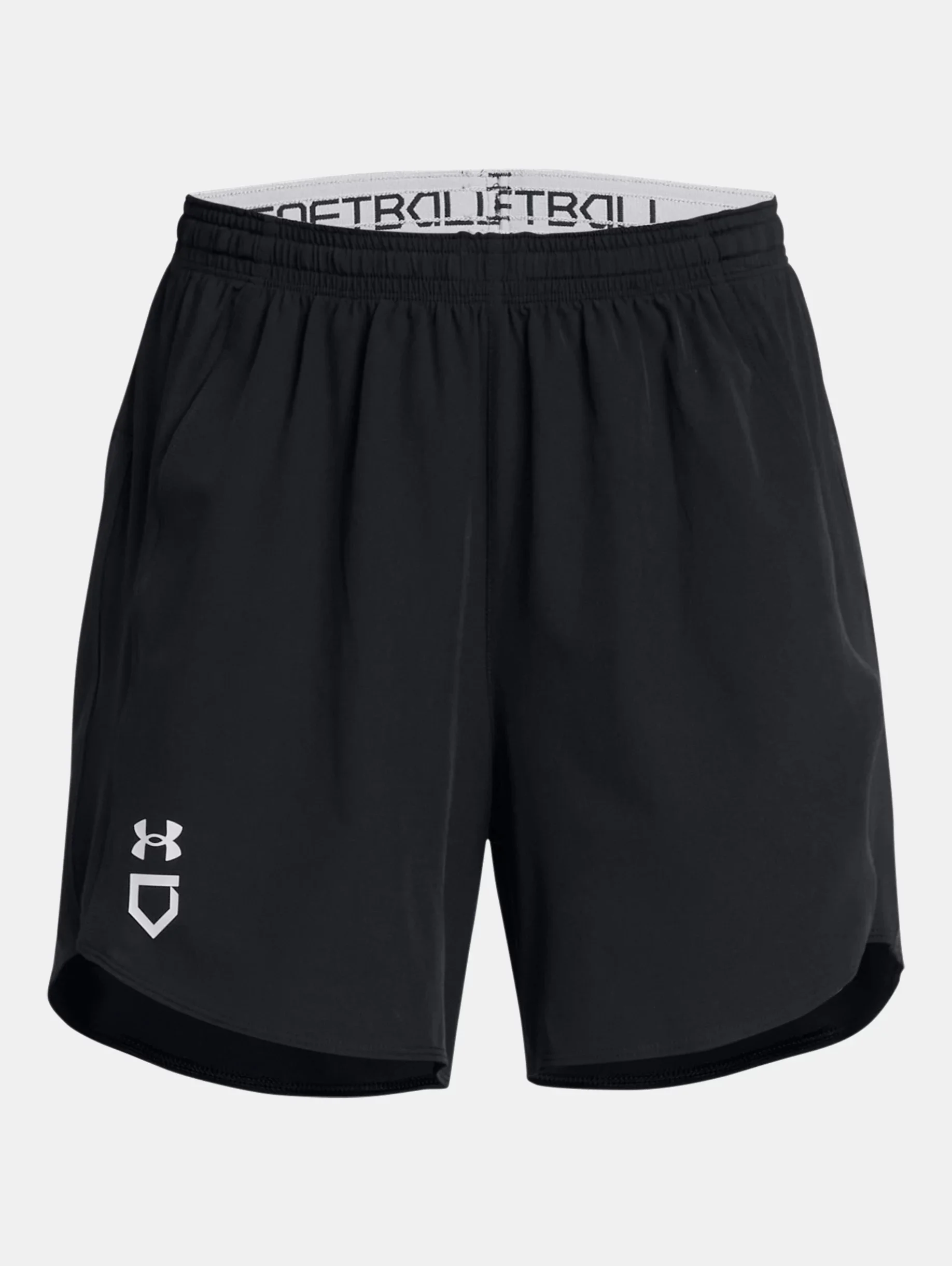 What's it do? Made for those super-hot softball practices, these shorts are stretchy, light, and durable—with a rollable waistband for a custom fit. Product DNA - UA Storm technology repels water without sacrificing breathability - Stretch-woven fabric is tough but lightweight - 4-way stretch material moves better in every direction - Mesh panels for added breathability - Encased elastic waistband with internal drawcord can be easily rolled down - Invisible zip back pocket - Curved hem for complete mobility - Uses a fluorine-free water repellent treatment - Loose: Fuller cut for complete comfort. - Style #: 1386964 - Inseam: 4.75" - 88% Polyester/12% Elastane - Imported