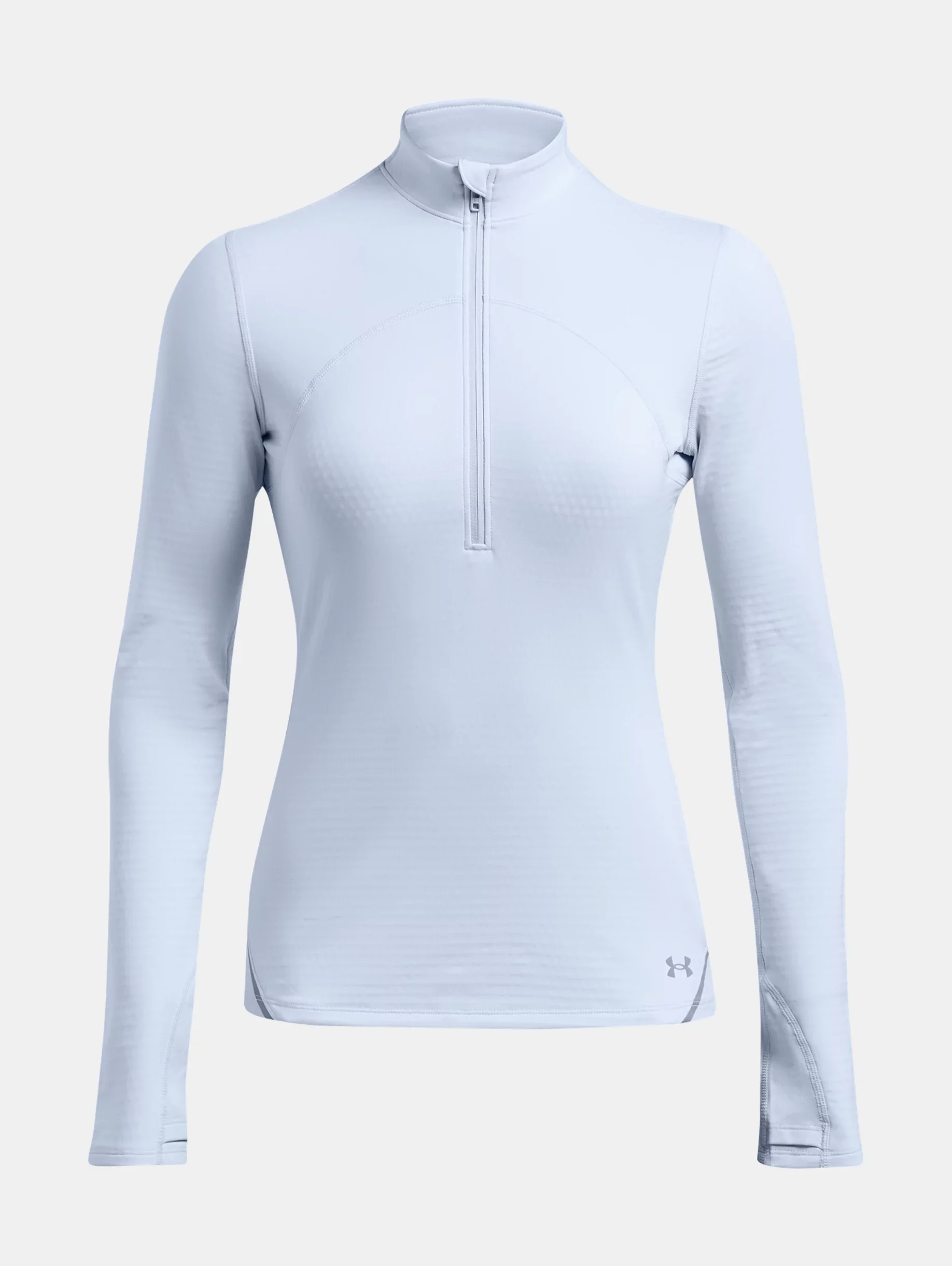 What's it do? With UA Vanish to keep you dry and distraction-free, we added a soft lining that traps warmth in for those cold weather days and stretches with every move. It's got everything you need to hit training hard. Product DNA - Ultra-warm, textured knit fabric with added stretch for comfort that moves with you - Dual-layer fabric on side body & lower sleeves helps keeps you warm with a soft brushed interior & smooth exterior - Material wicks sweat & dries really fast - 4-way stretch material moves better in every direction - Generous ½ zip front makes for easy layering - Built-in thumbholes help keep sleeves in place - Reflective branding & tape details for greater low-light visibility - Odor control technology minimizes odor - Fitted: Streamlined fit that’s not too tight or too loose. - Style #: 1386417 - Body: 88% Polyester/12% Elastane - Panels: 87% Polyester/13% Elastane - Imported