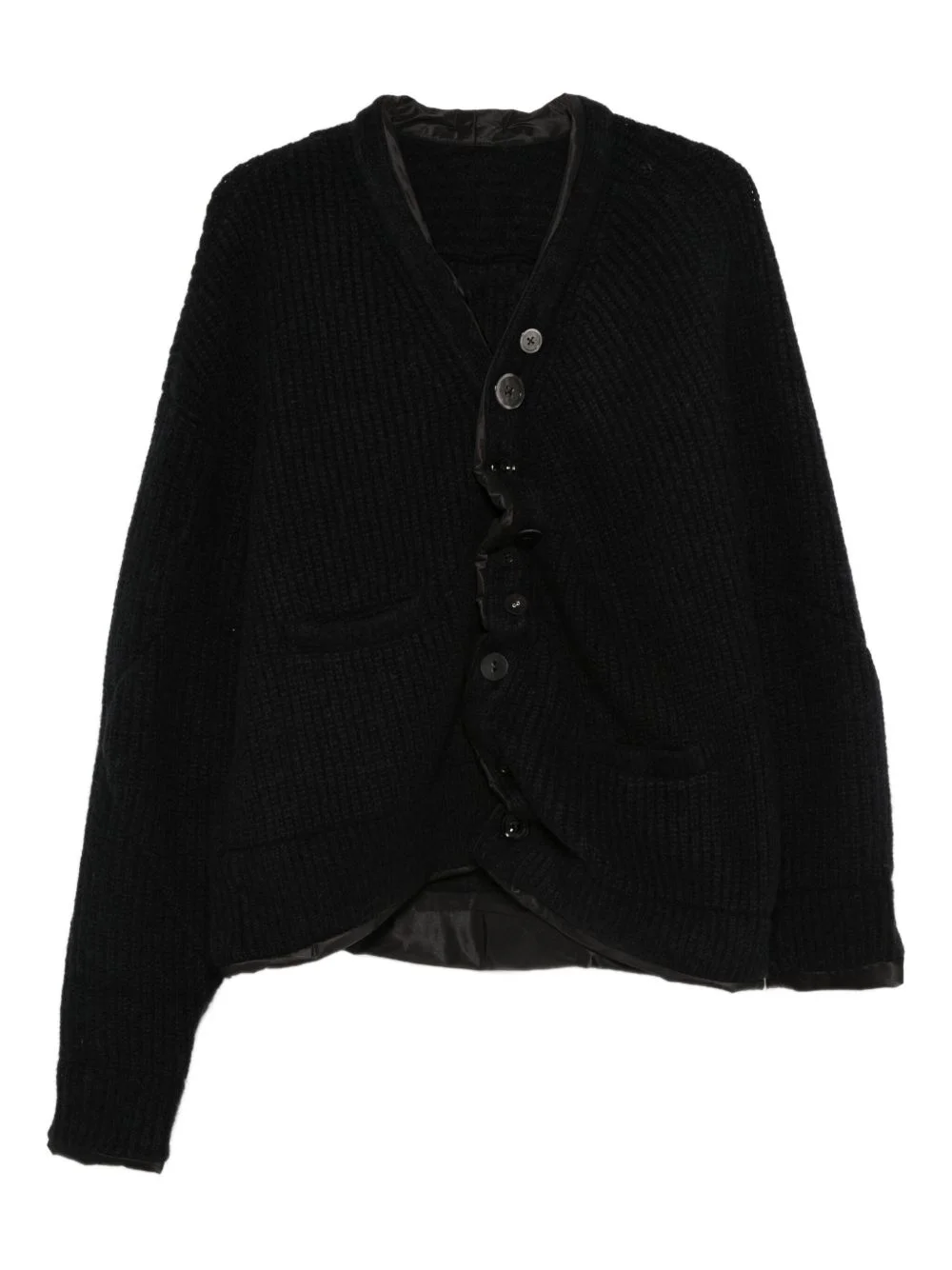 asymmetric cardigan Highlights - Black - Ribbed knit - Long sleeves - Button fastening - V-neck - Front patch pockets - Asymmetric design Imported Composition Silk 100%, Alpaca 52%, Nylon 36%, Wool 12% Washing instructions Dry Clean Only