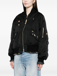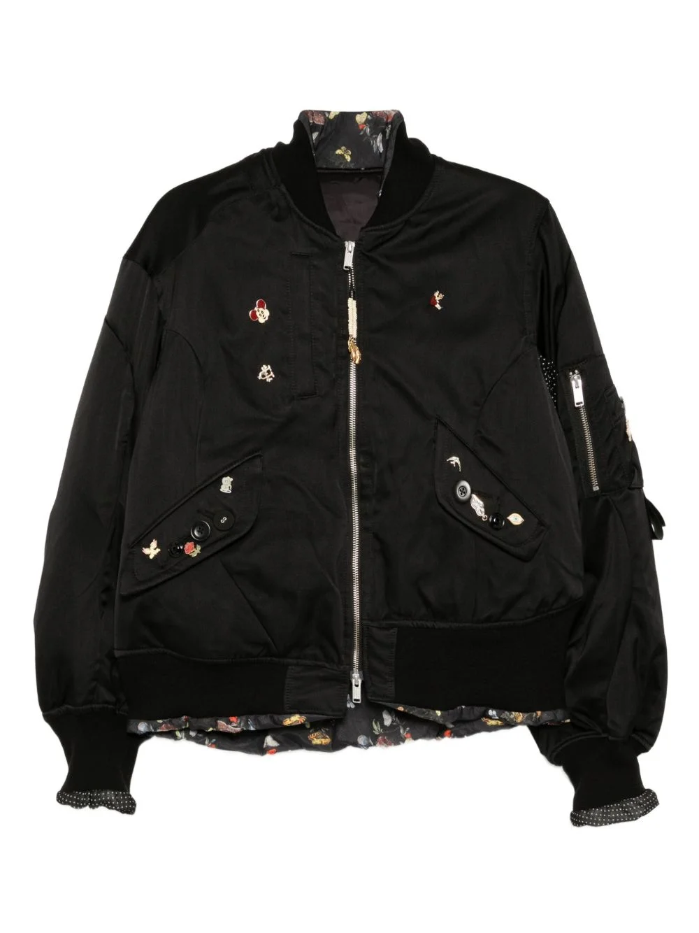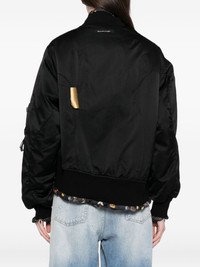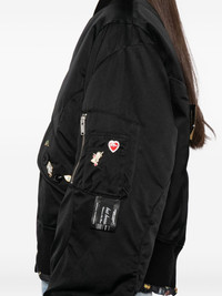 badge-embellished jacket Highlights - Black - Front zip fastening - Two side flap pockets - Long sleeves Imported Composition Outer: Silk 63%, Polyester 37% Silk 100% Lining: Cotton 70%, Silk 30% SIZE & FIT Model measurements Height 6 ft 2 in(1.88 m) Bust/Chest 36.61 in(93 cm) Hips 36.22 in(92 cm) Waist 27.55 in(70 cm) FittingInformation Designed to be unstructured, offering a loose fit throughout Made from a padded non-stretch fabric, giving it no natural elasticity Washing instructions Dry Clean Only