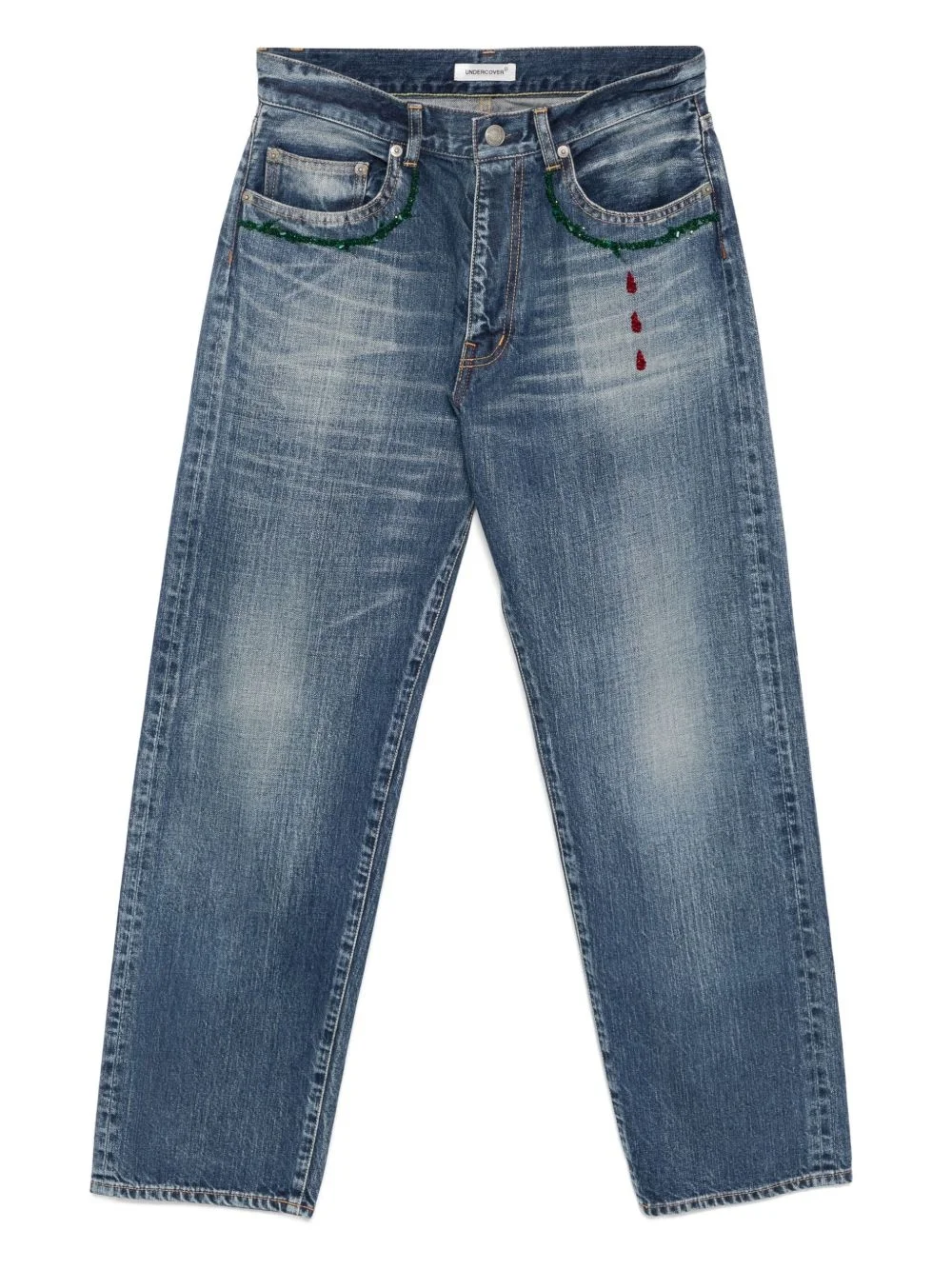 bead-embellished jeans Highlights - Indigo blue - Front button and zip fastening - Belt loops - Classic five pockets - Logo patch to the rear Imported Composition Cotton 100% Washing instructions Dry Clean Only