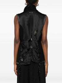 bead-embellishment waistcoat Highlights - Black - Front button fastening - Rear bead embellishments - Front pockets - Peak lapels Imported Composition Outer: Wool 100%, Cupro 100%, Silk 100% Lining: Cupro 100%, Polyester 100% SIZE & FIT Model measurements Height 5 ft 8 in(1.73 m) Bust/Chest 29.92 in(76 cm) Hips 33.07 in(84 cm) Waist 23.22 in(59 cm) Washing instructions Dry Clean Only