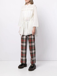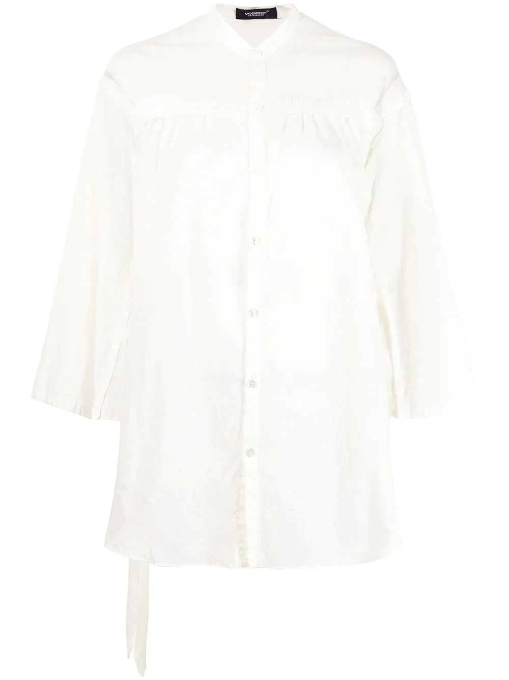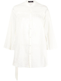belted pleated shirt ivory cotton pleat detailing belted waist front button placket three-quarter length sleeves curved hem collarless Imported Composition Cotton 100% SIZE & FIT Model measurements Height 5 ft 9 in(1.76 m) Bust/Chest 29.13 in(74 cm) Hips 33.07 in(84 cm) Waist 22.83 in(58 cm) FittingInformation This piece fits true to size. We recommend you get your regular size Cut for a loose fit Made with a lightweight non-stretch fabric Washing instructions Dry Clean Only