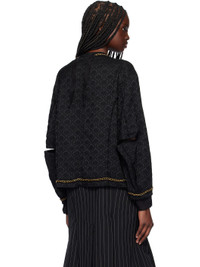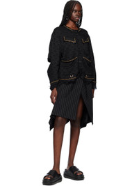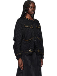 Stretch acrylic-blend brocade jacket. Jacquard graphic pattern and curb chain appliques throughout. · Round neck · Button closure · Flap and patch pockets · D-rings at front · Chiffon trim and frayed edge at hem and cuffs · Cutout at elbows · Full chiffon lining Supplier color: Black base Body: 59% acrylic, 25% polyester, 13% nylon, 3% polyurethane. Lining: 70% rayon, 30% nylon. Made in Japan 251414F063000