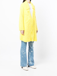 brushed knitted coat Undercover is a Japanese clothing brand founded by Jun Takahashi in 1993 influenced by street culture. Following the brand's casual aesthetic, this knitted coat features a vivid yellow hue and stands out thanks to its all-over brushed finish. Imported Composition Nylon 100% SIZE & FIT Model measurements Height 5 ft 10 in(1.78 m) Bust/Chest 30.31 in(77 cm) Hips 34.64 in(88 cm) Waist 25.59 in(65 cm) FittingInformation This piece fits true to size. We recommend you get your regular size Cut for a loose fit Made with a mid-weight fabric