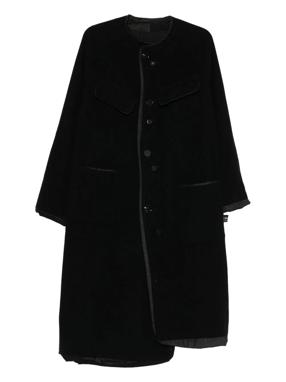 buttoned-trimmed coat Highlights - Black - Button fastening - Long sleeves - Trim detail - Front pockets - Straight hem Imported Composition Outer: Yak 100%, Silk 100% Lining: Polyester 100%, Cupro 100% Washing instructions Dry Clean Only