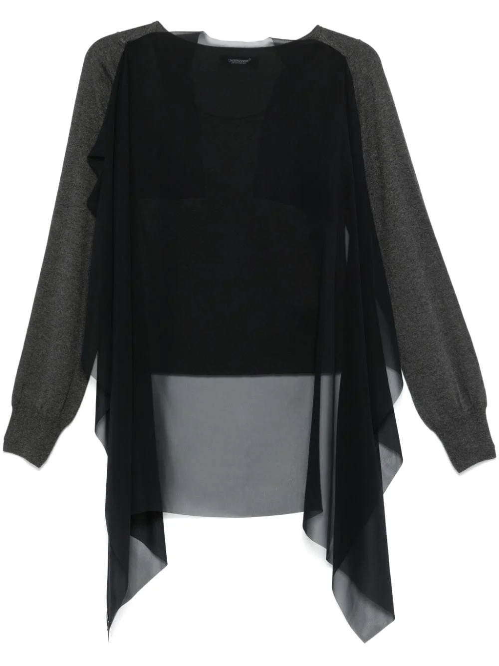 cape-insert sweater Highlights - Charcoal grey - Cashmere-silk blend - Fine knit - Melange effect - Round neck - Long sleeves - Ribbed cuffs and hem - Rear cape insert Imported Composition Polyester 100%, Silk 85%, Cashmere 15% SIZE & FIT Model measurements Height 5 ft 11 in(1.8 m) Bust/Chest 32.67 in(83 cm) Hips 35.82 in(91 cm) Waist 25.98 in(66 cm) FittingInformation Designed for a slim fit that sits just away from the body offering a close yet comfortable fit Made with a midweight knit, this piece offers some stretch Washing instructions Do Not Wash/Do Not Dry Clean