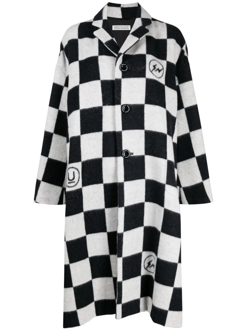 check-print button-up coat Highlights - Black/white - Cashmere blend - Check print - Notched collar - Front button fastening - Drop shoulder - Long sleeves - Rear patch pocket - Straight hem - Mid-length Imported Composition Outer: Cashmere 63%, Wool 20%, Polyester 17% Lining: Polyester 100% SIZE & FIT Model measurements Height 5 ft 10 in(1.78 m) Bust/Chest 30.31 in(77 cm) Hips 34.64 in(88 cm) Waist 24.01 in(61 cm) FittingInformation Designed for an oversized fit, offering additional room throughout Made from a heavyweight non-stretch fabric This piece fits true to size – take your usual size Washing instructions Dry Clean Only