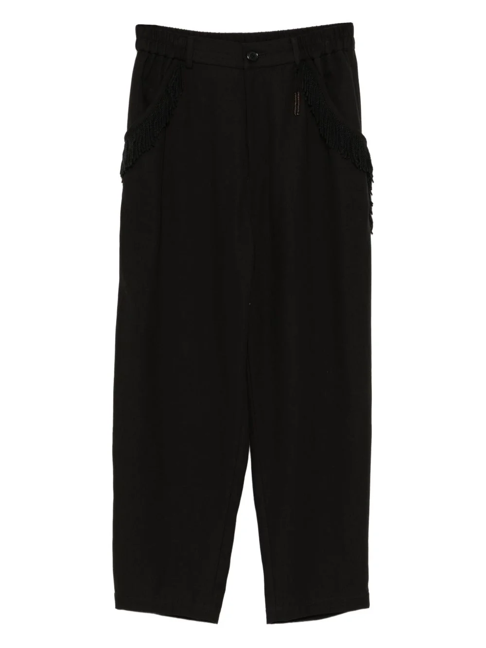 cotton tapered trousers Highlights - Black - Concealed front zip fastening - Elasticated waistband - Two side slash pockets - Rear button-fastening pocket Imported Composition Cotton 100% Washing instructions Hand Wash