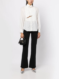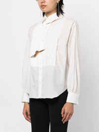 cut-out detail cotton shirt white cotton cut-out detailing pintuck detailing classic collar front button fastening rear tie fastening buttoned cuffs long sleeves Imported Composition Cotton 100% SIZE & FIT Model measurements Height 5 ft 10 in(1.77 m) Bust/Chest 31.49 in(80 cm) Hips 35.43 in(90 cm) Waist 25.19 in(64 cm) FittingInformation This piece fits true to size. We recommend you get your regular size Cut for a loose fit Made with a lightweight fabric Washing instructions Dry Clean Only