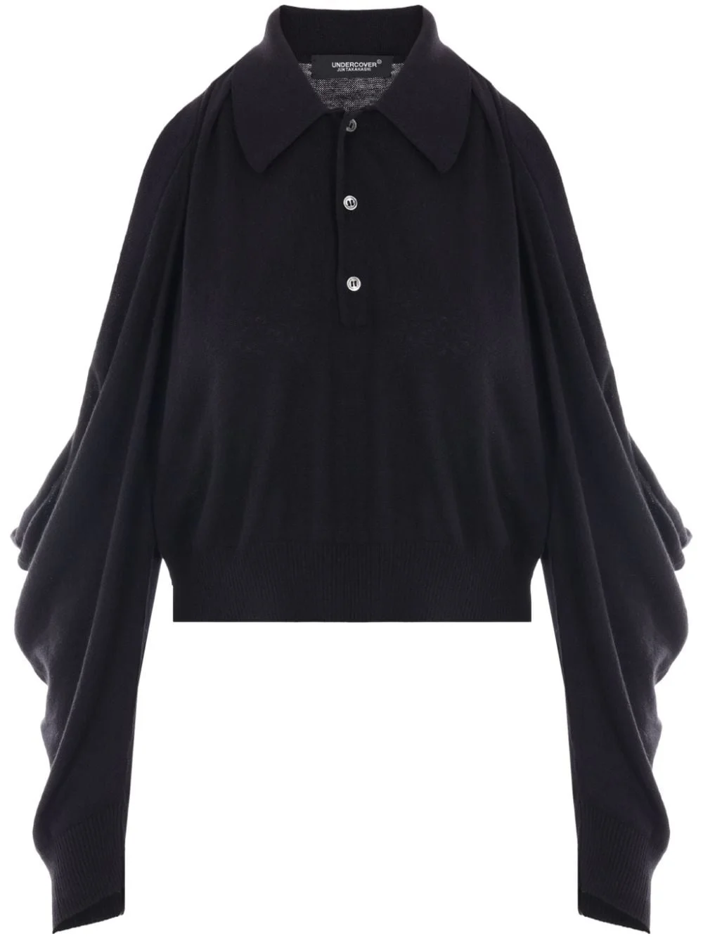 cut-out polo top Highlights - Black - Cotton-silk blend - Cut-out detailing - Classic collar - Front button placket - Long sleeves - Straight hem Imported Composition Cotton 70%, Nylon 20%, Silk 10%