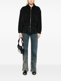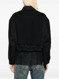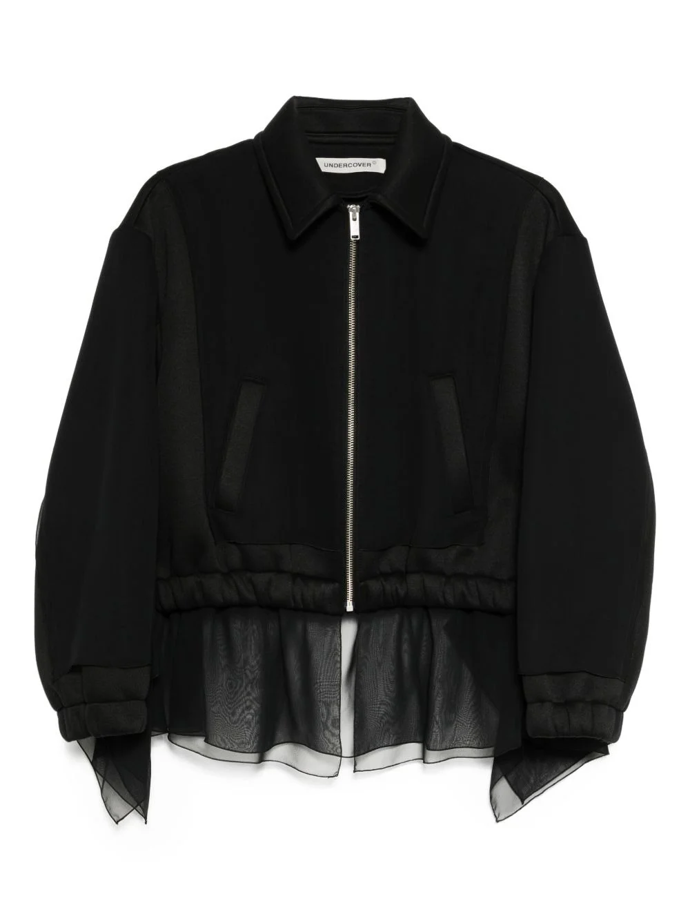 elastic-waist zip-front jacket Highlights - Black - Front zip fastening - Sheer overlay Imported Composition Outer: Polyester 100% Polyester 100% SIZE & FIT Model measurements Height 5 ft 9 in(1.76 m) Bust/Chest 31.1 in(79 cm) Hips 35.03 in(89 cm) Waist 24.4 in(62 cm) FittingInformation Designed to be unstructured, offering a loose fit throughout The elasticated hem allows for movement and a comfortable fit Made from a midweight non-stretch fabric Washing instructions Dry Clean Only