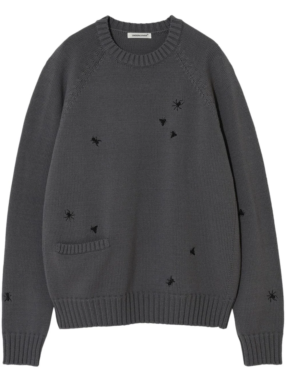 embroidered crew-neck jumper Highlights - Grey - Cotton blend - Embroidered motif - Crew neck - Long sleeves - Ribbed cuffs and hem - When buying this unisex item, keep in mind that it is graded in standard men's sizing. Imported Composition Polyester 63%, Cotton 37%