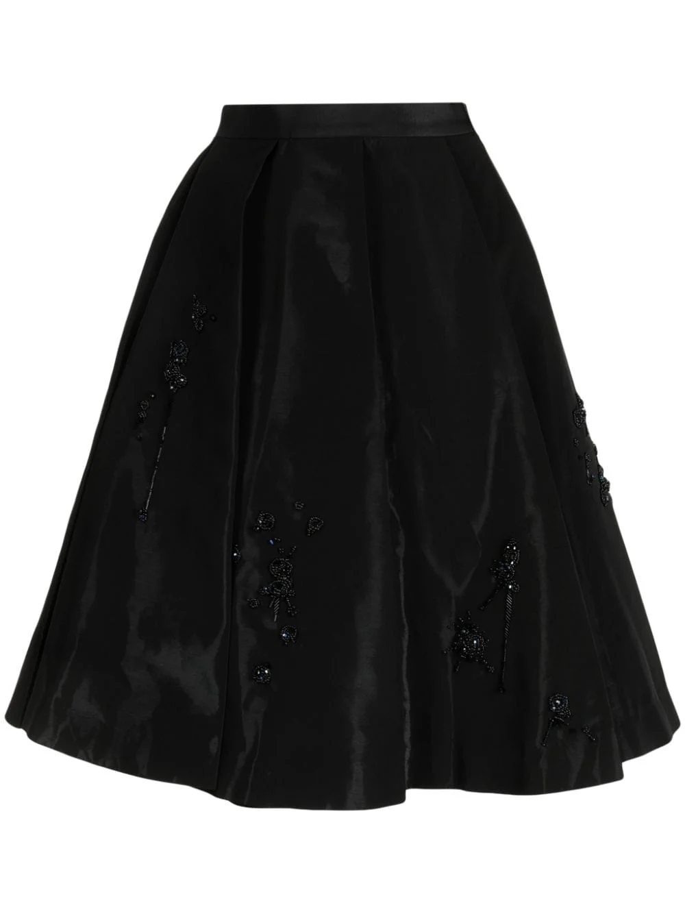 embroidered high-waisted skirt Highlights - Jet black - Embroidered design - Bead embellishment - Pleat detailing - High-waisted - Side zip fastening - Straight hem Imported Composition Lining: Cupro 100% Outer: Triacetate 75%, Polyester 25% Washing instructions Dry Clean Only