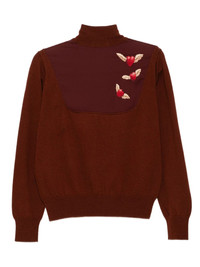 embroidered jumper Highlights - Chestnut brown - Funnel neck - Semi-sheer panels - Fine knit Imported Composition Wool 55%, Cotton 45% Washing instructions Dry Clean Only