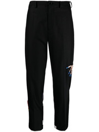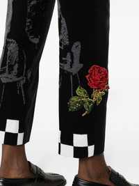 embroidered mid-rise trousers Highlights - Black/multicolour - Wool-silk blend - Check pattern - Embroidered design - Intarsia knit - Pressed crease - Bead embellishment - Belt loops - Concealed fly and button fastening - Mid-rise - Straight leg - Two side slash pockets - Straight hem - Cropped Imported Composition Outer: Wool 56%, Silk 44% Lining: Cupro 100% SIZE & FIT Model measurements Height 5 ft 10 in(1.77 m) Bust/Chest 32.28 in(82 cm) Hips 35.03 in(89 cm) Waist 25.19 in(64 cm) FittingInformation Designed with a cigarette cut, these trousers allow for a close fit at the waist and offer an unrestricted fit through to the ankle Made from a midweight fabric This piece fits true to size – take your usual size Washing instructions Dry Clean Only