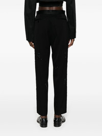 embroidered straight-leg trousers Highlights - Jet black - Wool - Embroidered design - Tonal stitching - Bead embellishment - Pleat detailing - Belt loops - Concealed front fastening - Mid-rise - Straight leg - Two side welt pockets - Two rear welt pockets - Straight hem - Ankle-length Imported Composition Outer: Wool 100% Lining: Silk 62%, Polyester 38% SIZE & FIT Model measurements Height 5 ft 10 in(1.77 m) Bust/Chest 32.28 in(82 cm) Hips 35.03 in(89 cm) Waist 25.19 in(64 cm) FittingInformation Designed with a cigarette cut, these trousers allow for a close fit at the waist and offer an unrestricted fit through to the ankle Made from a midweight non-stretch fabric This piece fits true to size – take your usual size Washing instructions Dry Clean Only