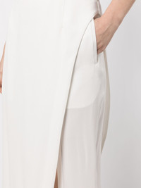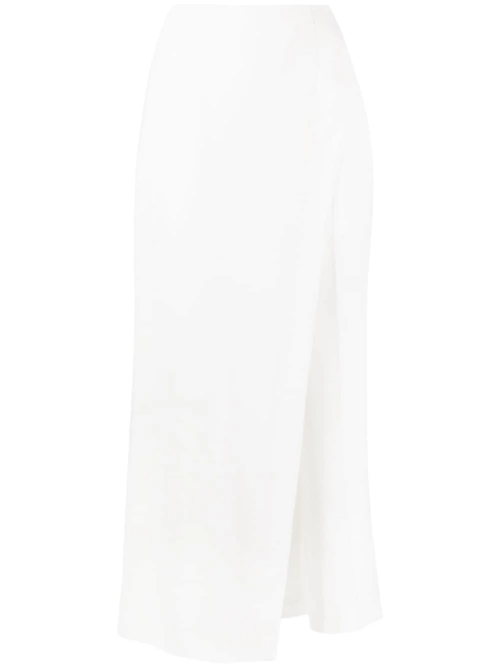 fitted-waistline long skirt Highlights - White - Fitted waistline - Front slit - Ankle-length - Two side slit pockets - Straight hem Imported Composition Triacetate 85%, Polyester 15% SIZE & FIT Model measurements Height 5 ft 9 in(1.76 m) Bust/Chest 31.1 in(79 cm) Hips 35.03 in(89 cm) Waist 24.4 in(62 cm) FittingInformation Designed for a slim fit, these trousers offer a close fit at the waist, allowing a comfortable close fit and some movement over the leg Made from a midweight non-stretch fabric, this piece offers minimal elasticity when worn This piece fits true to size – take your usual size Washing instructions Dry Clean Only