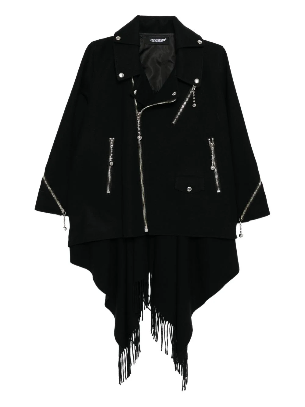 fringe-embellished zip-up jacket Highlights - Black - Front zip fastening - Zip-fastening chest pocket - Two side zip-fastening pockets Imported Composition Outer: Wool 90%, Nylon 10% Lining: Cupro 100% SIZE & FIT Model measurements Height 5 ft 10 in(1.78 m) Bust/Chest 30.31 in(77 cm) Hips 34.64 in(88 cm) Waist 23.22 in(59 cm) FittingInformation Designed to be unstructured, offering a loose fit throughout Made from a midweight non-stretch fabric Washing instructions Dry Clean Only